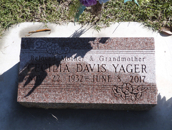 - Cecilia Lucetta Davis was born on 22 Nov 1932 in Chickasha, Grady Co, OK. She died on 08 Jun 2017 in Oklahoma City, Oklahoma Co, OK. She married John William Yager in Jun 1951. was born on 22 Nov 1932 in Chickasha, Grady Co, OK. She died on 08 Jun 2017 in Oklahoma City, Oklahoma Co, OK. She married John William Yager in Jun 1951. 15